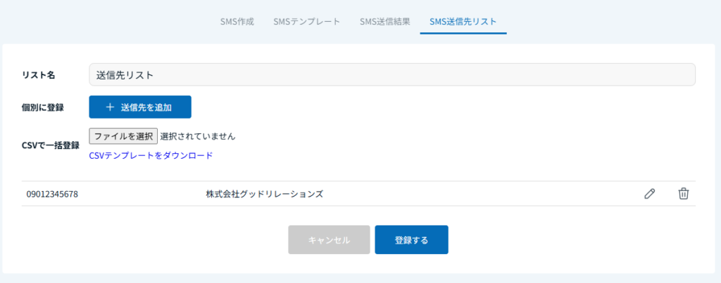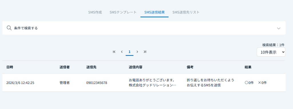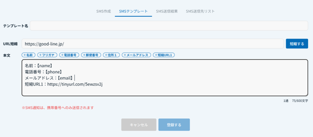 SMS送信時の発信先番号になります。