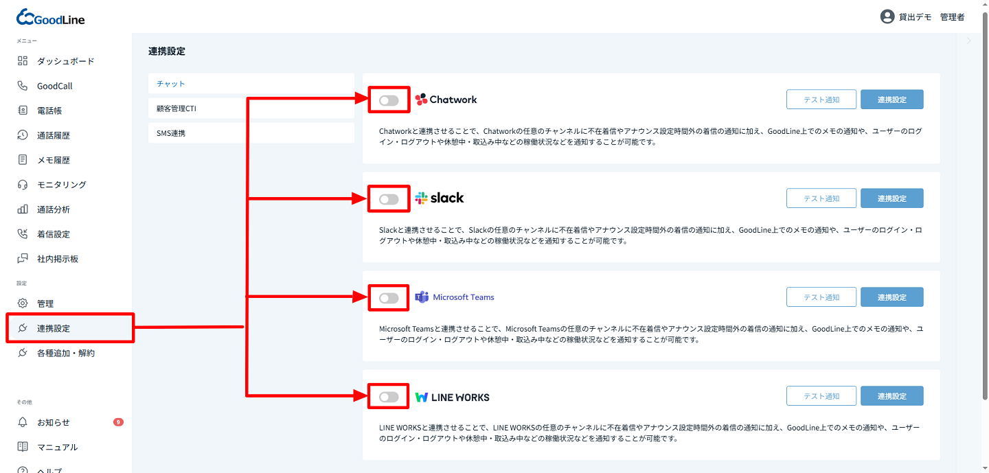 連携設定 → チャット